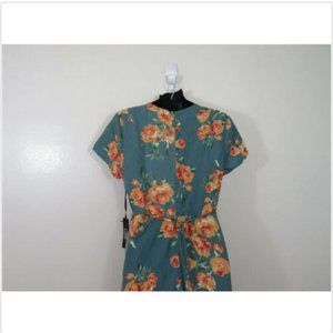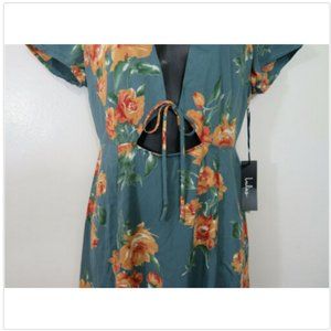 Lulus Short Sleeve Floral Midi Dress Green Cut Out