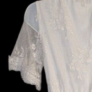 Material: Sheer lace overlay with a delicate floral pattern throughout.
