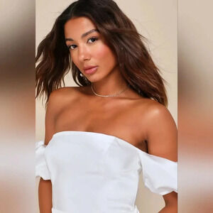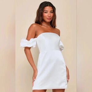 Lulu's Significant Sensation White Satin Off-the-Shoulder Mini Dress Party NWOT. See all pictures for details. Size currently SOLD OUT online.