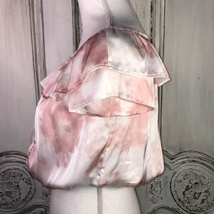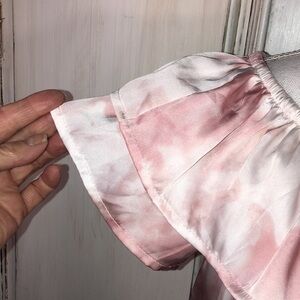 Lulus Silky Feel Tie Dyed Pattern Ruffle Neck Button Down Short Sleeve Top S/S