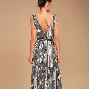 Lulus Silver and Black High Low Sundress with Pleated Slit Size S