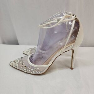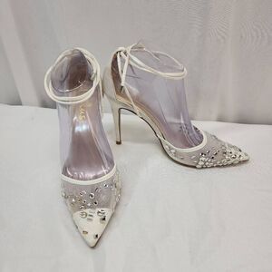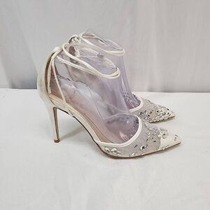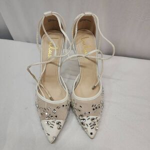 Lulu's Size 8.5 Lykana White Satin Rhinestone Lace-Up Pointed-Toe Pumps Wedding heels