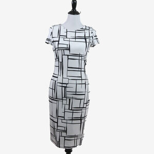 Lulu’s Size L Long and Drawn Out Midi Dress Black Ivory Print