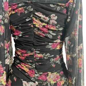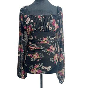 Lulus Size Medium Top Blouse Long Sleeve Floral Ruched