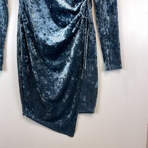 Lulus Size S Velvet V-Neck Wrap Pencil Mini Dress Blue Stretch