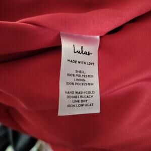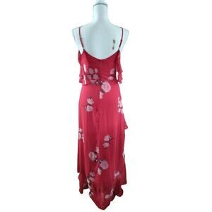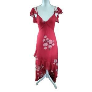 Lulu's Love in Bloom Red Floral Dress in Size Small. Empire waist with triangle bodice. Adjustable straps with ruffled sleeves. Cascading skirt with ruffled high low hemline.