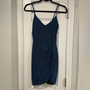 Lulus Size XS Forever Your Girl Metallic Teal Bodycon Dress Thin Strap Stretchy