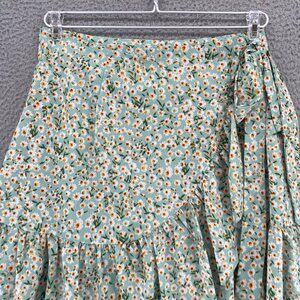 Lulus Skirt Womens Medium Flourishing Dreams Green Floral Wrap Mini Ruffle NWT