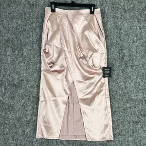 Lulus Skirt Womens Medium Pink Ruche Slit Mini Pencil Party Satin Like Sarong