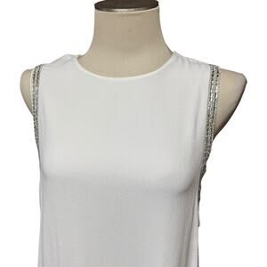 Lulus Skylark Beaded Sheath Dress Rhinestone White Medium