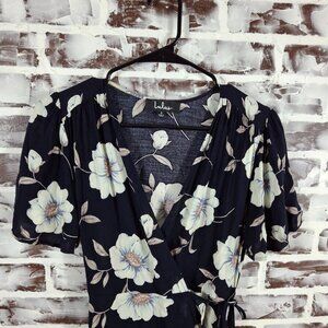 Lulus Small Wrap Dress Maxi Black White Floral Short Sleeves