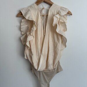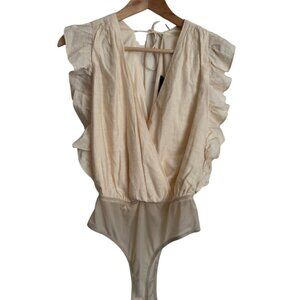 Lulus | Smile Awhile Beige Ruffled Surplice Bodysuit Size XS