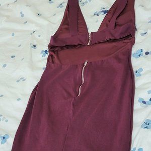 -Turn the heat up for your next date night with the Lulus Smoldering Love Burgundy Cutout Bodycon Mini Dress! Medium-weight ponte stretch knit shapes this dress that has wide straps, a plunging V-neckline, and a princess-seamed bodice. A banded waist tops a bodycon mini skirt. A wide strap (with an exposed silver zipper) accents the open back to create a cutout effect. Exposed silver back zipper/hidden clasp.