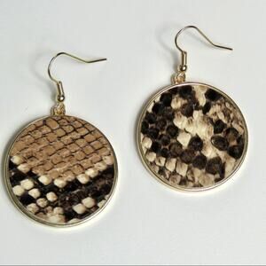 Lulu's Snakeskin Leather Circle Drop Earrings
