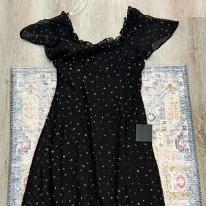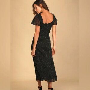 Lulus Exclusive! Have your day start off sweet with the Lulus So Kiss Me Black Floral Print Swiss Dot Maxi Dress! Lightweight woven fabric (with a red, white, and blue floral print and a textured, swiss dot pattern throughout) shapes a ruffled, square neckline and sheer short sleeves. A gathered bodice atop an empire waist continues to an A-line silhouette before ending at a flowy, maxi length skirt. Hidden back zipper/clasp.