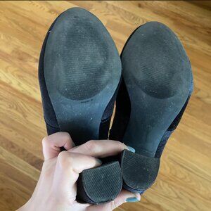 Worn only once! Has a sturdy block heel and are very comfortable. Has a little extra padding in the insole and adjustable ties for the perfect fit