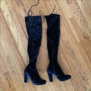 Lulu's So Much Yes Black Velvet Over the Knee Boots