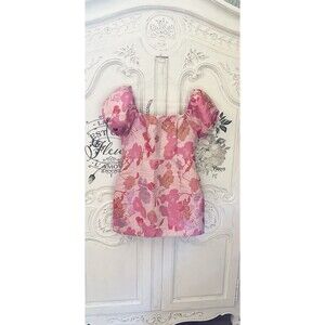 Lulus So Stunning Dress Women's L Pink Floral Jacquard Mini Puff Sleeve NWT