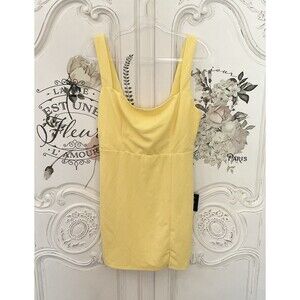 Lulus Social Sensation Dress Women's L Light Yellow Mini Square Bodycon NWT