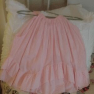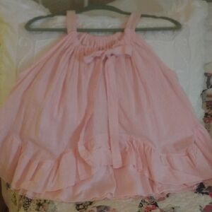 Lightweight sleeveless tank with gathered neckline. Flowing tiered ruffle hem for a feminine touch. Easy pull-on style for casual wear.