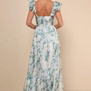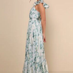 Lulus Soiree Perfection Light Blue Floral Ruffled Tiered Maxi Dress - Size XL