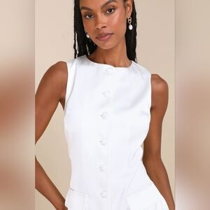 Lulus Sophisticated Icon White Satin Button-Up Mini Dress With Pockets XL Party. New without tags. See all pictures for details.
