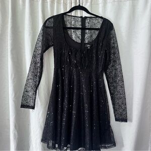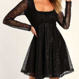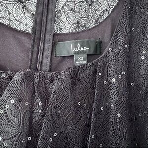 Lulu’s Sparkling Nights Black Lace Skater Babydoll Dress size XS