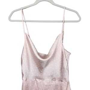 Lulu's Spot in my Heart Pink White Polka Dot Satin Slip Dress Women's Size S Small