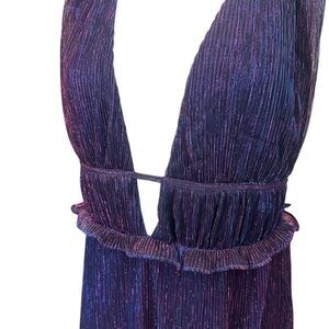 Lulus Spotlight on You Blue and Pink Metallic Maxi Long Dress Sleeveless Flowy X