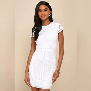 Lulu's Spread Your Shine White Sequin Embroidered Bodycon Dress XL Bridal Party NWOT. See all pictures for details.