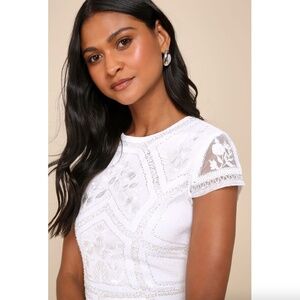 Lulus Spread Your Shine White Sequin Embroidered Mini Dress Women's Size XS