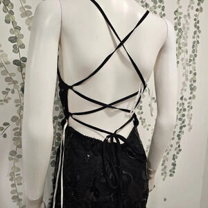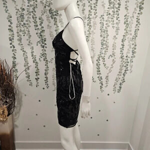 Lulus Spread the Magic Black Sequin Lace-Up Bodycon Mini Dress Sz S