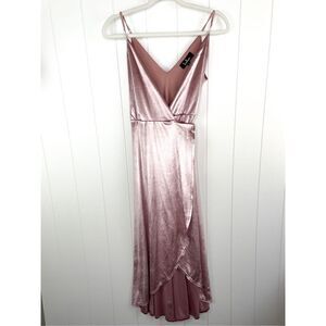 Lulus Starlight Starbright Mauve Pink Velvet High-Low Wrap Dress Size XS