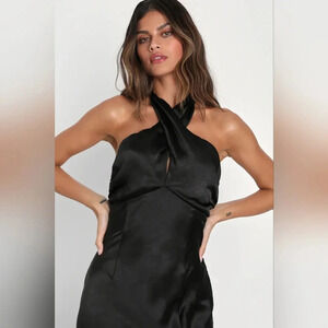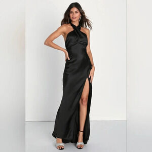Lulu's Start of Forever Black Satin Halter Mermaid Maxi Dress. New without tags. See all pictures for details. Currently SOLD OUT.