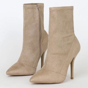 Lulu's Stassy Taupe Suede Pointed Ankle Boots