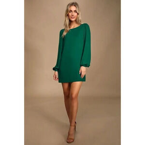 Lulus Exclusive! Why "hashtag" it out with your old dresses, when you can post up in the Lulus Status Update Forest Green Shift Dress?! A simple woven poly bodice includes long puffed sleeves with buttoned cuffs, and a scoop neckline. This day-to-night look is remarkably easy to style, and as fun as it is affordable!