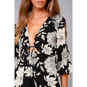Lulus Steal the Show Black and White Floral Print Cold-Shoulder Dress Medium M