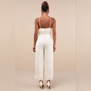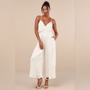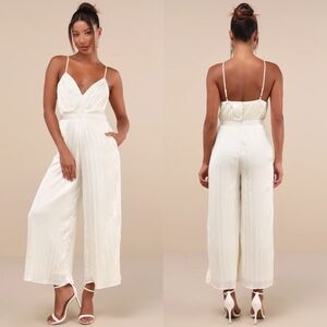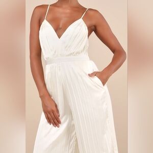 Lulus Stellar Poise Ivory Pleated Satin Wide-Leg Jumpsuit XL Wedding Party. New without tags. See all pictures for details. Currently SOLD OUT online.