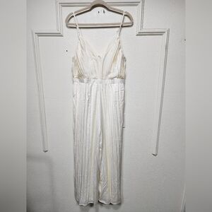 Lulus Stellar Poise Ivory Pleated Satin Wide-Leg Jumpsuit XL Wedding Party