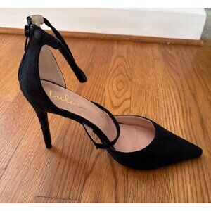 Lulus Stiletto Heels Black Suede Like Pointed Toe Ankle Strap Back Zipper 10