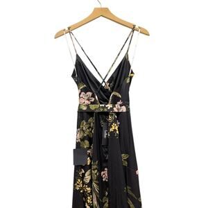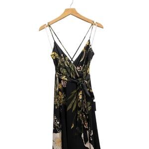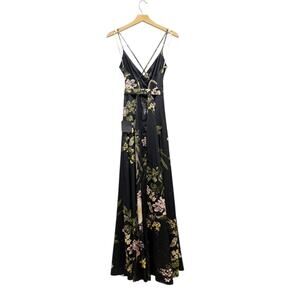 Lulus Still the One Black Floral Print Satin Maxi Dress size Small NWT