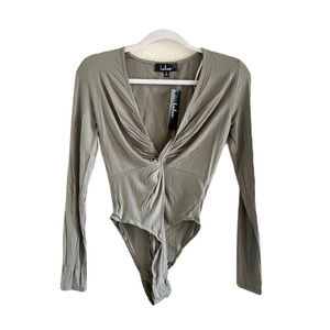 Lulu's Stop and Stun Olive Green Long Sleeve Twist-Front Bodysuit S NWT