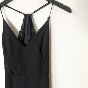 Lulus Story of a Starry Night black backless lace maxi dress, small.