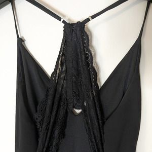Lulus Story of a Starry Night black backless lace maxi dress, small