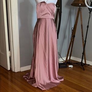 Chic strapless design. Luxurious satin fabric. Perfect for elegant events.