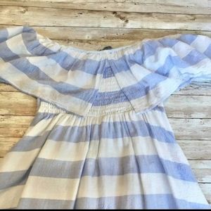 Lulus- Stripe Off/ On Shoulder button Down Dress-M