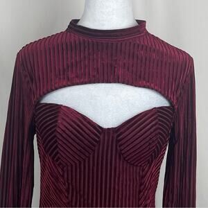 Lulus Striped Sheer Burgundy Feminine Velvet Cut Out Body Suit NWOT