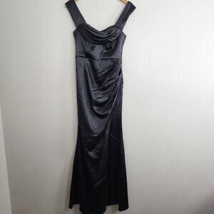 Lulus Stunning Arrival Black Satin Off The Shoulder Maxi Dress