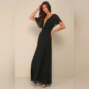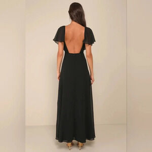 Lulu's Stunning Demeanor Black Flutter Sleeve Backless Maxi Dress M Wedding
