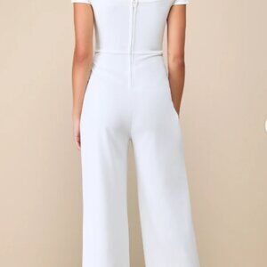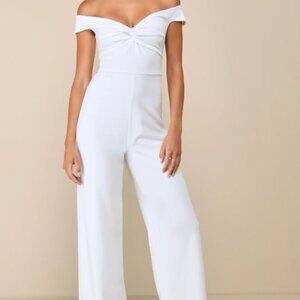 Lulus Stunning Existence White Off-the-shoulder Knot-front Jumpsuit - Size L